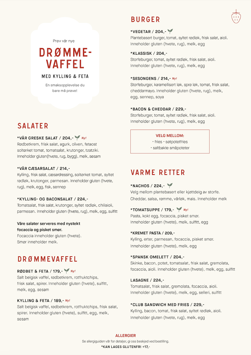 Start your culinary journey with their småretter, featuring the delectable Foccaciapizza Caprese and the hearty Bakt Potet Med Bacon. For lunch, try the uplifting Vår Cæsarsalat, brimming with fresh ingredients that promise a refreshing experience.
